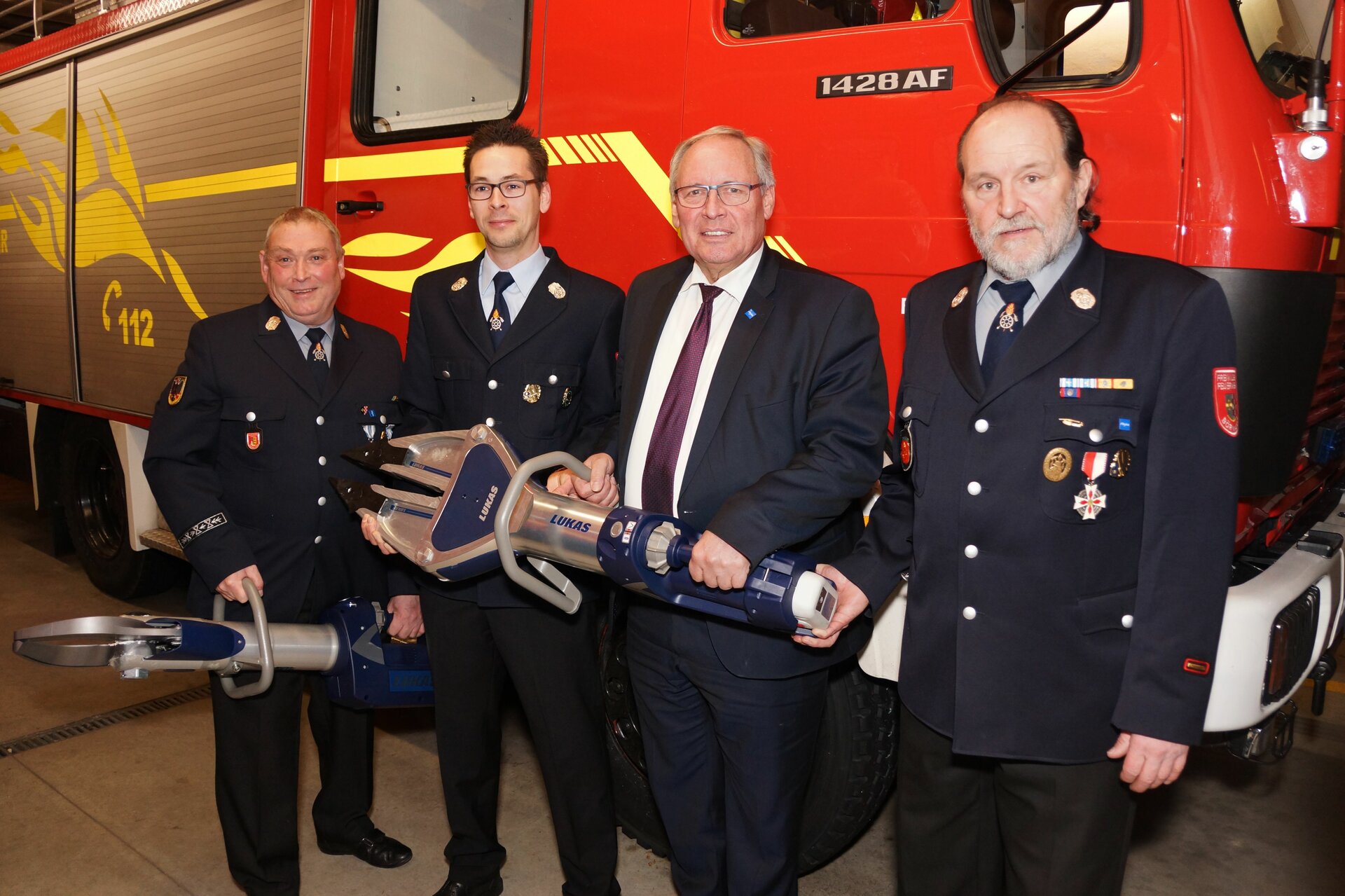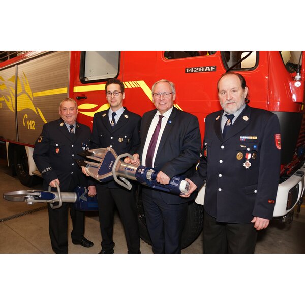 The latter sometimes requires two essential aspects. On the one hand, the experience of the rescue services and their full commitment, but also the right equipment. Having the right equipment at hand makes the work of the emergency services much easier. For this reason, the non-profit Family Rauch Foundation has decided to support the FFW Börwang with its donation. "The old rescue kit was no longer sufficient for certain vehicles, such as SUVs, and did not provide the necessary flexibility due to a lack of battery power," confirms Alexander Kolb, Commander at FFW Börwang. The donated rescue kit, consisting of battery rescue scissors and spreader, was an absolutely necessary acquisition for the FFW Börwang. "We are very pleased that the charitable Family Rauch foundation could place the urgently needed donation in the right place", said Anton Klotz, District Administrator and Chairman of the Foundation Board after the official handover of the donation in Börwang.
