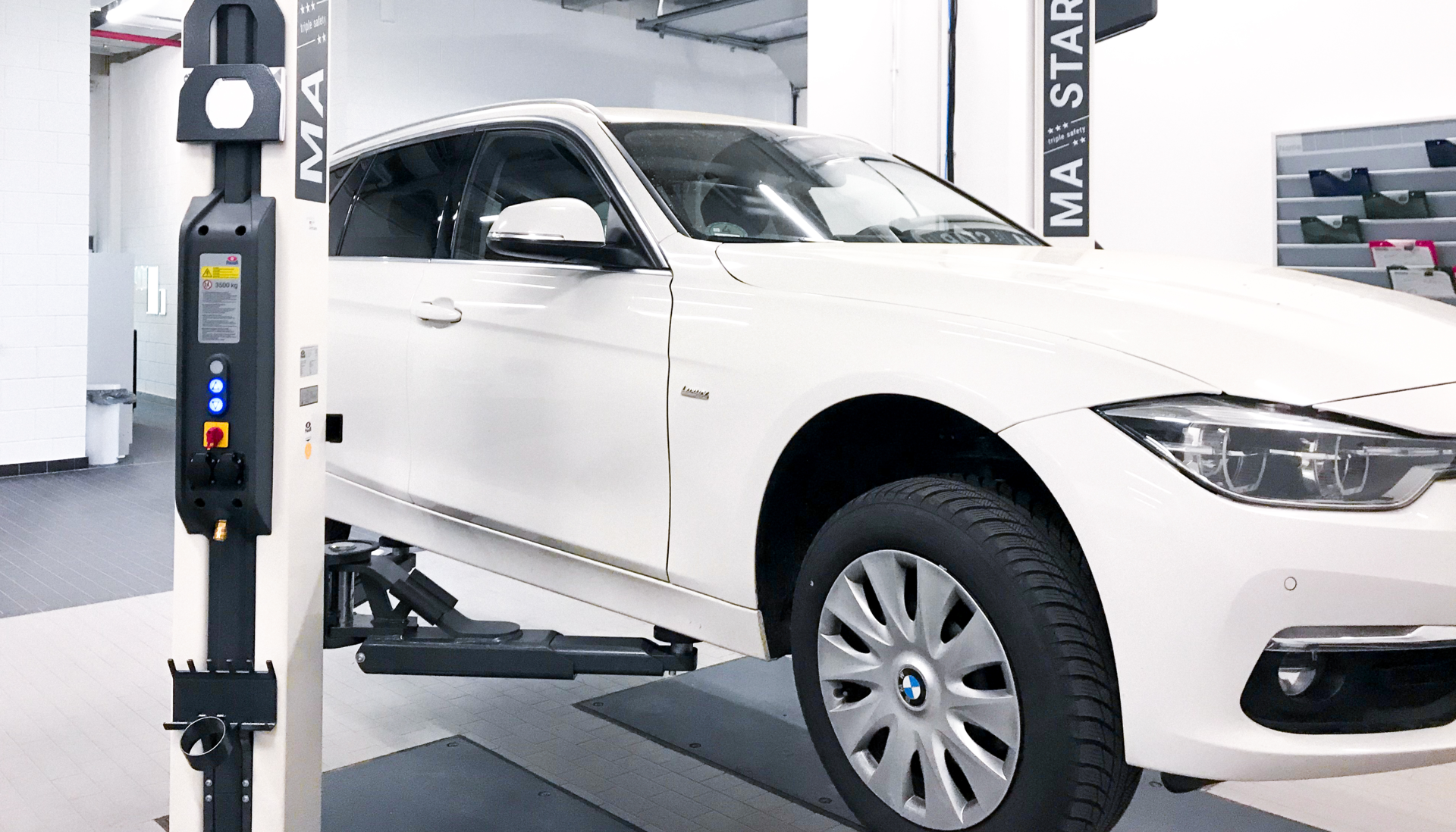 Desde hace semanas la producción en Haldenwang va a pleno rendimiento. Ya se fabricaron las primeras 164 unidades (junio del 2020) del MA STAR triple safety***** y algunas ya han sido suministradas e instaladas a clientes en Alemania, así como en el extranjero. Igualmente, el equipo del MAHA SERVICE CENTER está dispuesto en todo momento para instalar los nuevísimos elevadores de dos columnas en las instalaciones del cliente – naturalmente respetando las normas de higiene. Gracias a la tecnología “plug and play” para el suministro energético, el puente de cableado oscilante y las conexiones por enchufe en la placa de sensores se espera un montaje rápido y sin problemas. De esta forma, nada obstaculiza la primera puesta en marcha y el cliente puede iniciar directamente las primeras pruebas.