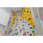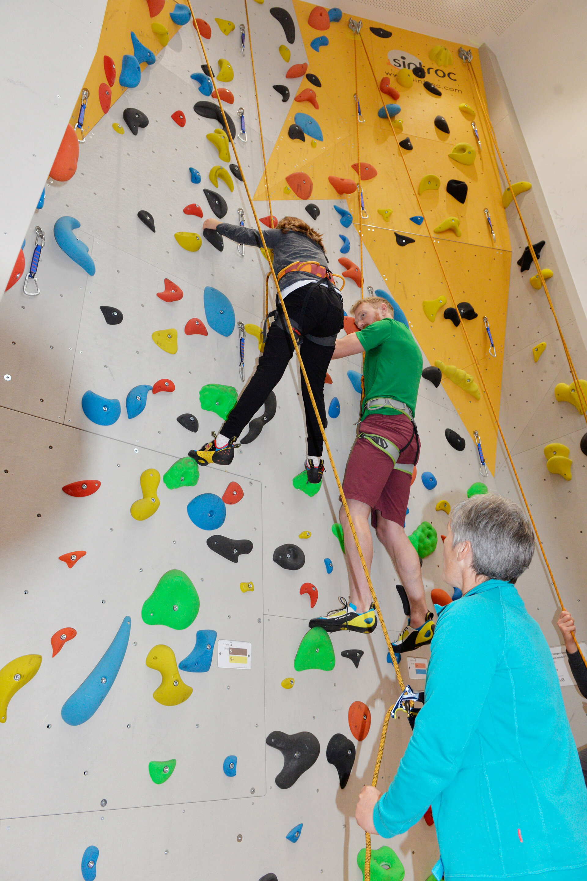 The climbing wall installed here is primarily intended for intensive outpatient therapy weeks. New possibilities are expected especially for people with neurological damage, enhancing their motor skills, cognitive development and motivation. Open disability work is offered in addition to mobile services for people with disabilities. Disabled members of the living units and supported living facilities of the disabled persons’ society ‘Verein für Körperbehinderte Allgäu’ can enjoy a new leisure offer in the climbing hall in supervised climbing groups. Further plans include the boarding school and short-term care facilities, as well as students of the Astrid Lindgren House using the climbing wall in the Allgäu ART Hotel for recreational activities and therapeutic purposes.