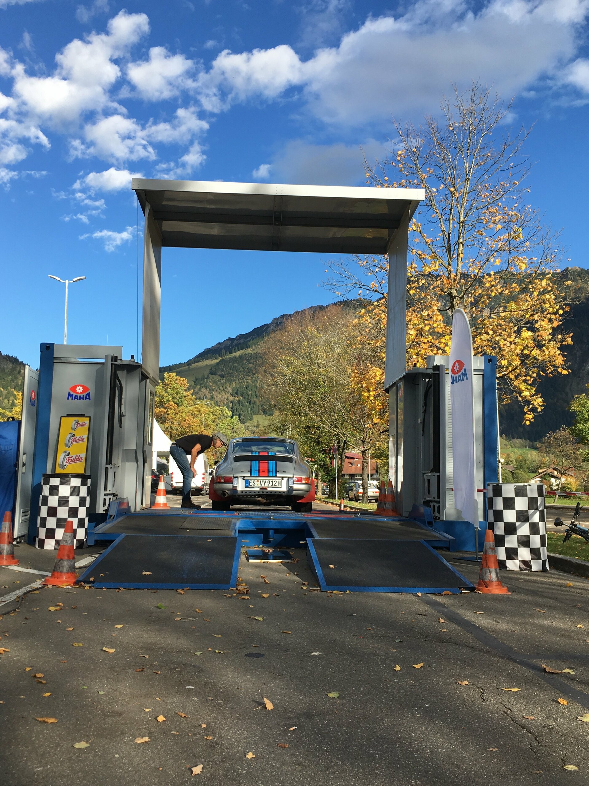 El proveedor de equipamiento para talleres facilita un contenedor de pruebas móvil para la recepción de los vehículos de carreras durante el popular evento de coches de época que se celebra en la Algovia (Alemania).
