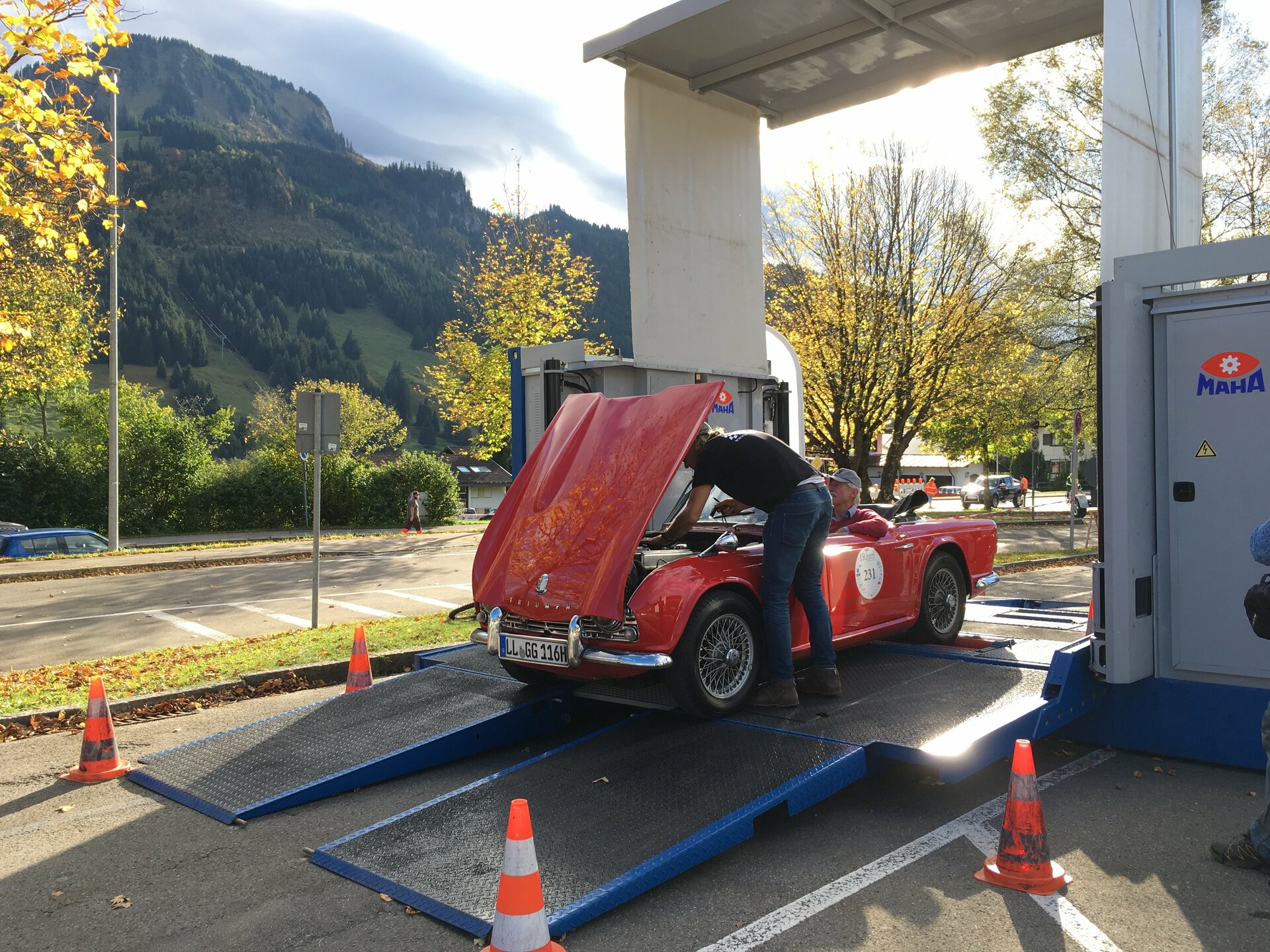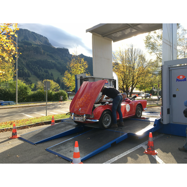 Durante los dos días antes del comienzo, todos los vehículos tuvieron que someterse a una debida inspección técnica. Para ello MAHA facilitó el equipamiento correspondiente, como ya lo hizo en años anteriores: los vehículos se inspeccionaron exhaustivamente en un contendor de pruebas móvil. Con asistencia experta se verificaron su estado general, el cumplimiento de los requerimientos del Código de Circulación y la potencia del sistema de frenado. Paralelamente, se aseguró el cumplimiento de todas las normas técnicas. Solo después de pasar la inspección con éxito, los participantes recibieron su autorización de salida.
