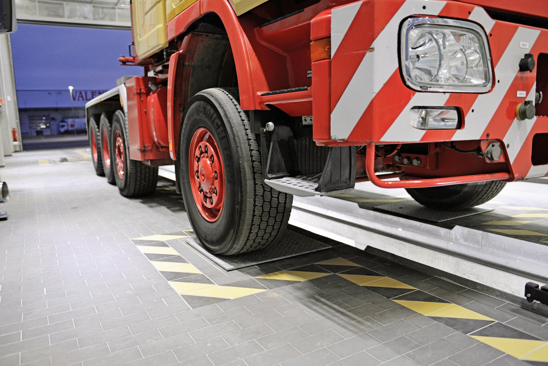 Para la inspección de vehículos con un peso máximo autorizado por encima de 3,5 t se requiere además un recorrido de traslación total de cada placa de ensayo de al menos 95 mm, así como una velocidad de traslación de entre 5 cm/s y 15 cm/s. Los detectores de holgura de MAHA en su configuración correspondiente también cumplen fácilmente con este requisito.