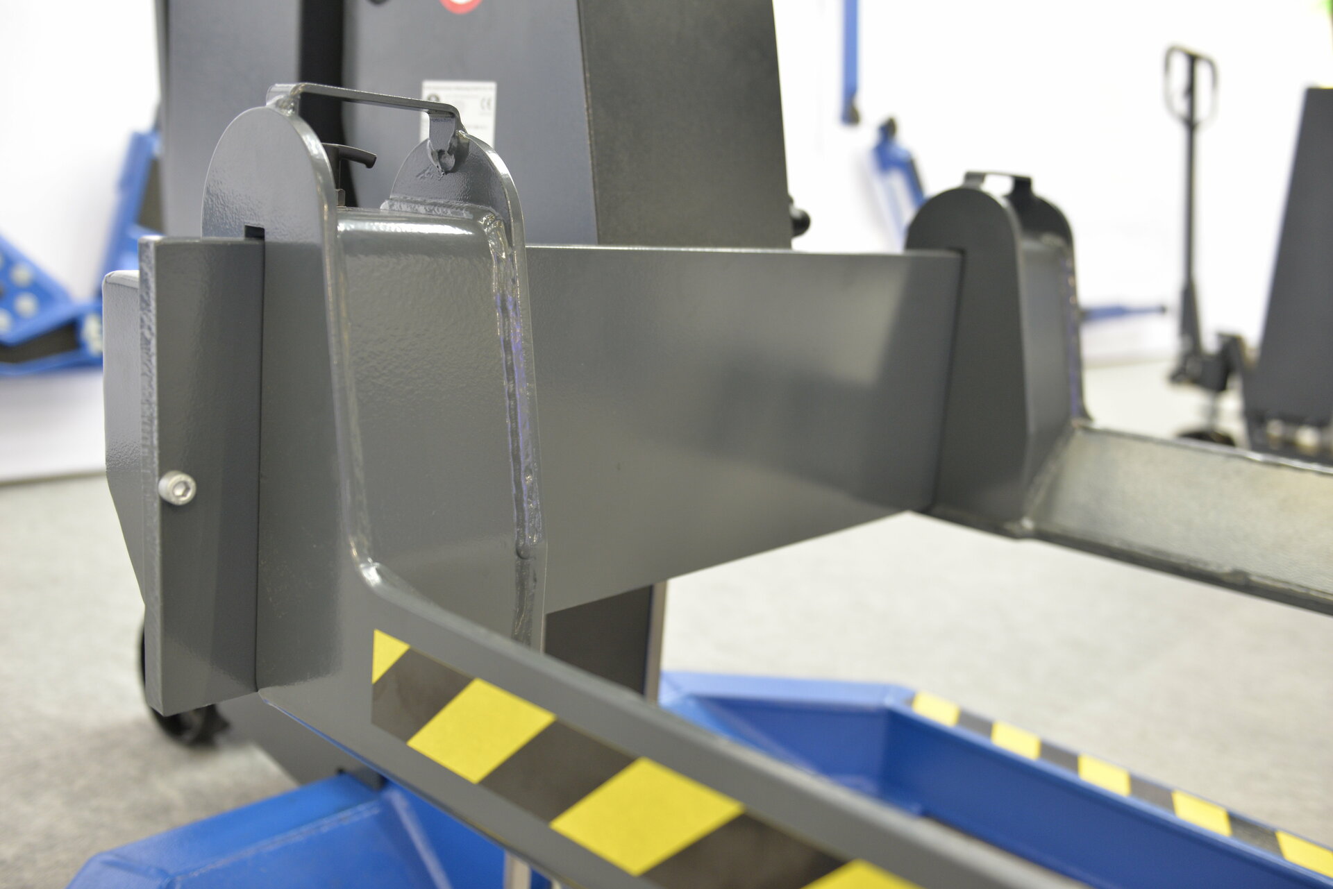 En combinación con la chaveta de captación como elemento de seguridad, esta combinación garantiza un posicionamiento en altura absolutamente exacto del vehículo así como una adaptación óptima del lugar de trabajo a las distintas necesidades.