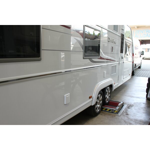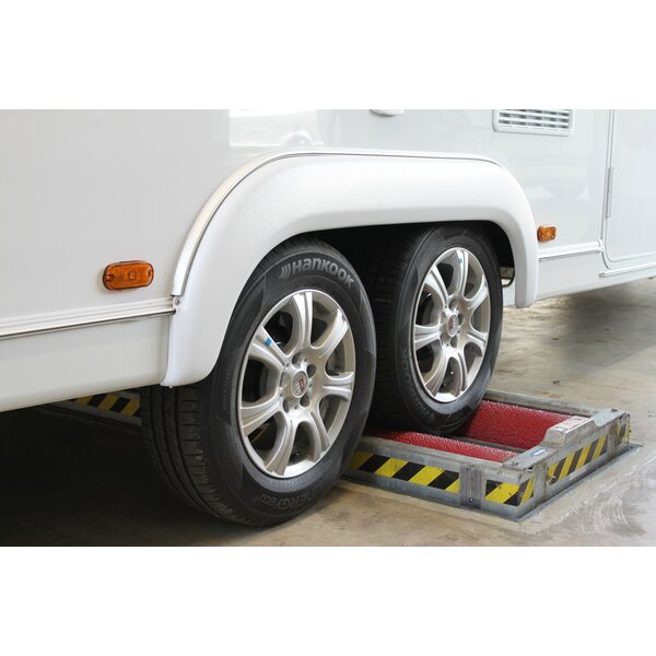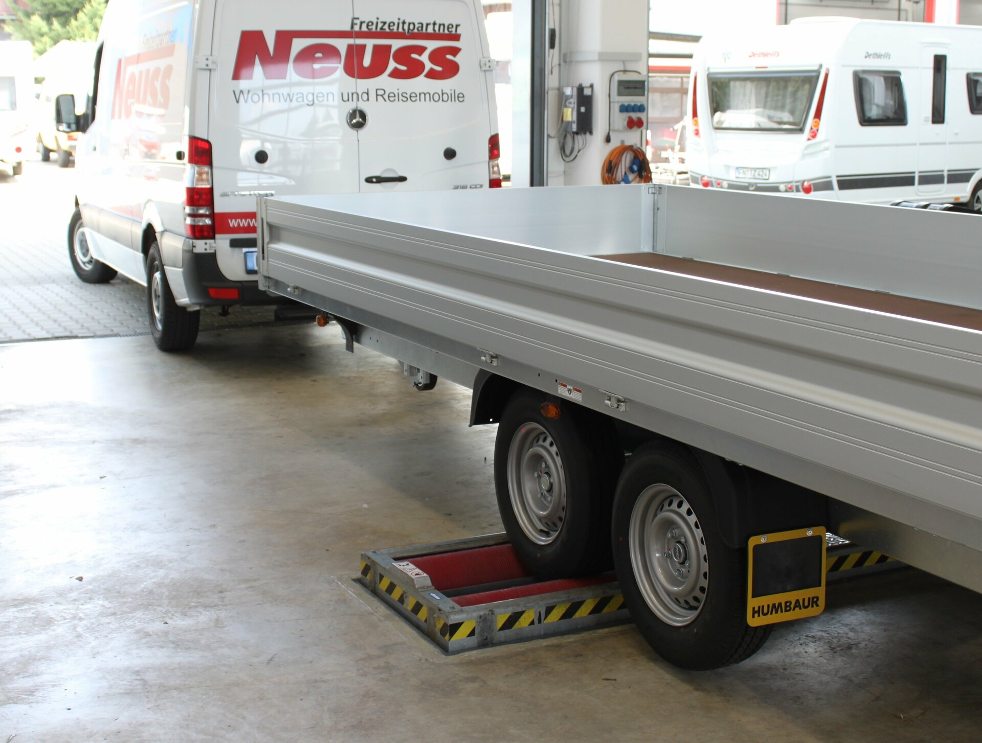 Los remolques para turismo con un peso máximo autorizado desde 750 hasta 3 500 kg están típicamente equipados con frenos de inercia. No obstante, según el modelo, a veces no es posible una inspección de los mismos en un frenómetro de rodillos tradicional. MAHA ofrece una solución práctica para una comprobación fiable de estos frenos: la elevación del juego de rodillos hidráulica.