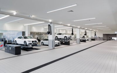 La inversión total para este proyecto ascendió a unos 34 millones de euros.De esta suma, 720.000 euros se destinaron a toda una gama de productos de MAHA. MAHA ha cubierto todos los campos de aplicación originarios para un total de 93 puestos de trabajo de taller en el área de servicios del concesionario.