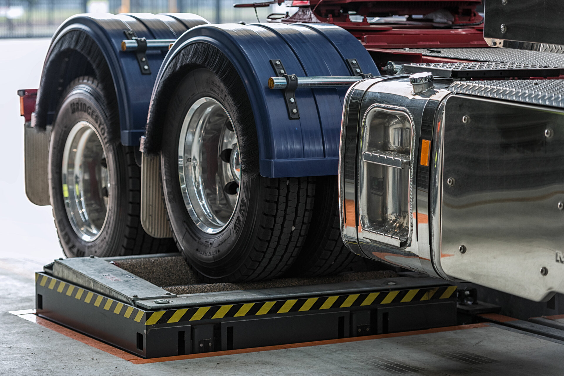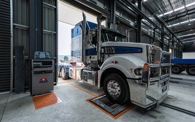 En el cliente se instalaron dos calles para inspección de frenos totalmente equipadas, inclusive elevación de juego de rodillos, simulación de carga y detector de holguras. Además, el emplazamiento dispone de un regloscopio digital integrado MLT 3000. Así, el equipamiento de la calle de ensayo está muy por encima de los estándares australianos. La calle de ensayo en la parte anterior se usa como puesto de trabajo de examinación para detectar problemas con la amortiguación, los frenos o los faros. La segunda calle de ensayo se encuentra en la parte posterior del foso del taller.