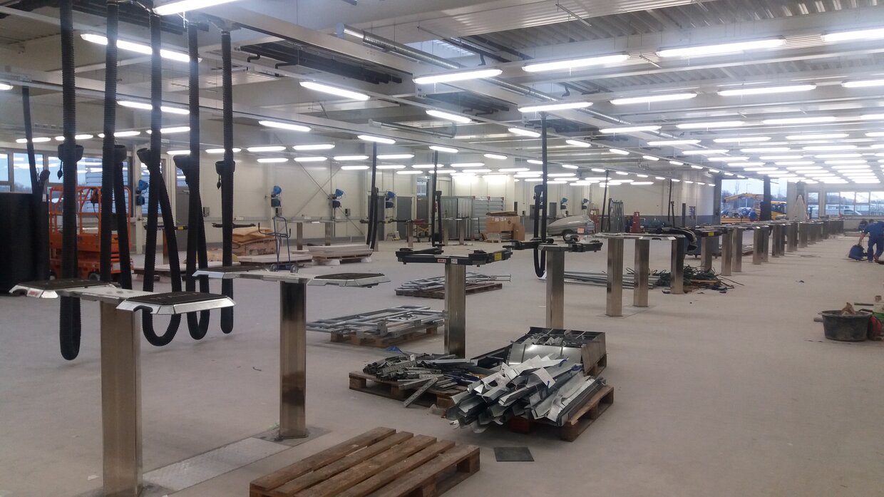 MAHA tuvo su primer contacto con este proyecto en el año 2015. El cliente, el concesionario Geisser en Karlsruhe, quiso instalar elevadores de bajo suelo de MAHA en su nuevo concesionario.El colaborador de MAHA, Rolf Schaub GmbH en Mühlacker, había despertado el entusiasmo del cliente por los elevadores de MAHA. Junto con la distribución, los gestores de producto, los ingenieros de I+D, así como el departamento especializado de ingeniería de MAHA, en un primer paso se comprobó la viabilidad sobre el subsuelo arenoso en el emplazamiento. Una vez autorizado por parte de MAHA, el arquitecto fue informado acerca de la manera de instalar los casetes de instalación en el subsuelo arenoso. Había que extraer el suelo arenoso y crear una placa de suelo, sobre la que se colocarían los casetes y se instalarían en aljabas prefabricadas.