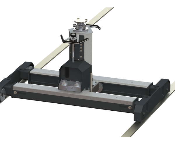 - Telescopic carriage for precision adjustment of pit jack lane width to fit the rails in the work pit