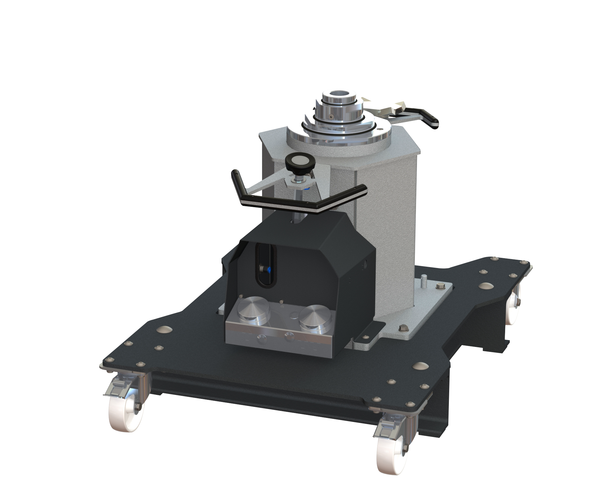 - Freely movable floor-running pit jack for flexible use at various work locations, e.g. workshops or work pit