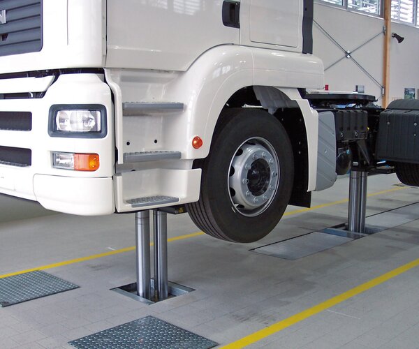 - Electronic synchronous control of lifting units for uniform vehicle lifting (as per EN 1493), independent of varying vehicle pick-up point heights, and with robust inductive height sensor system