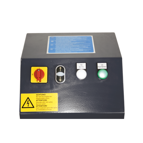 - Unidad de mando adicional para su instalación dentro del foso con conmutador-selector de seguridad y parada de emergencia