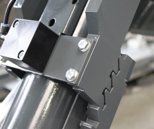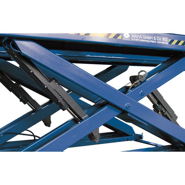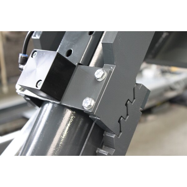 - El sistema de medición de recorrido, libre de mantenimiento e integrado en los cilindros de elevación, (sistema de medición de recorrido lineal-absoluto) hace prescindibles las barreras de luz para monitorizar la sincronización y los interruptores eléctricos para detectar la altura de elevación