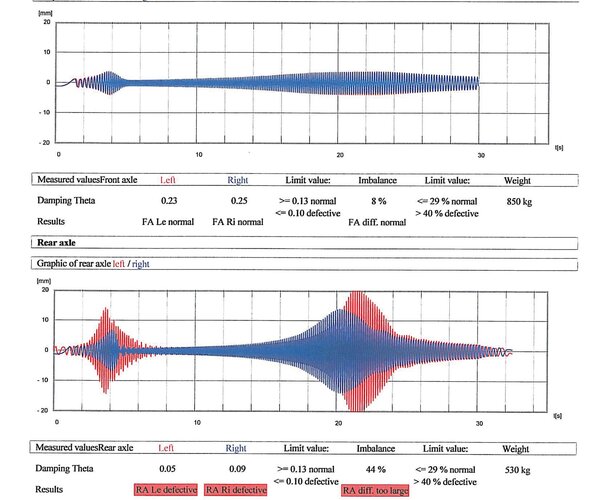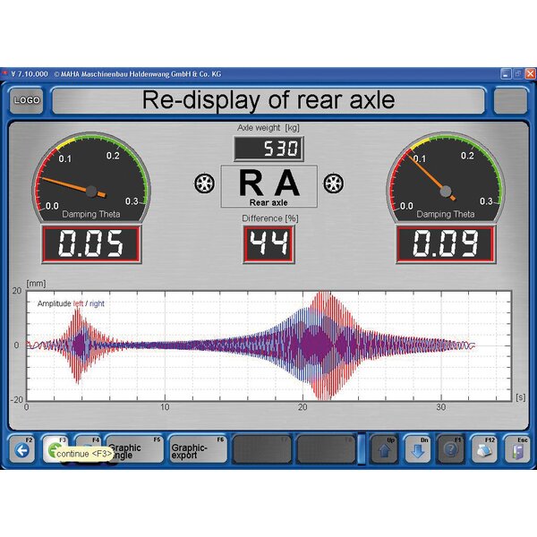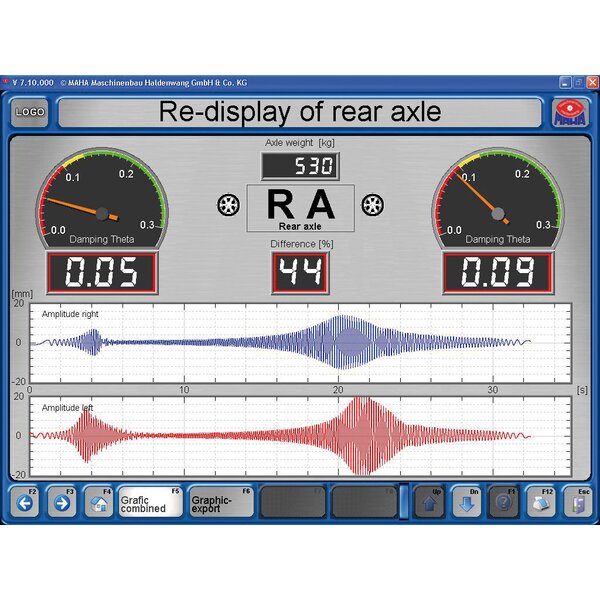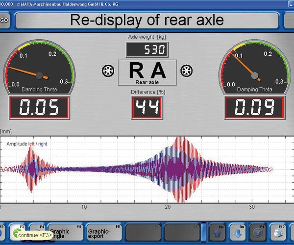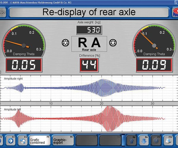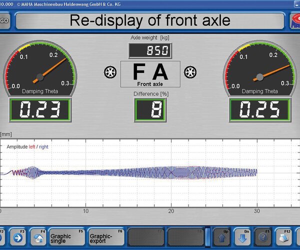 - En combinación con EUROSYSTEM: Visualización en la pantalla del ordenador con evaluación en la medida de amortiguación Dýÿ con indicación differencial y visualización gráfica