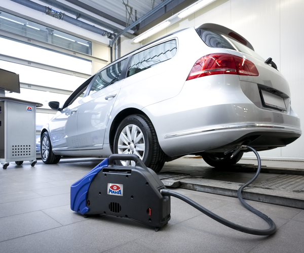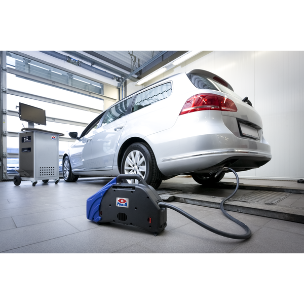 - Inspección y diagnóstico rápidos y sin complicaciones de la opacidad de los gases de emisión/concentración de partículas mediante proceso de corriente partida