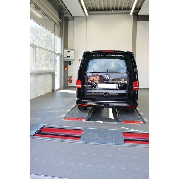 - Debido a su velocidad de prueba de 5 km/h equipada de serie, tanto turismos como camiones pueden comprobarse conforme a la ley.