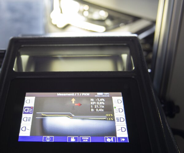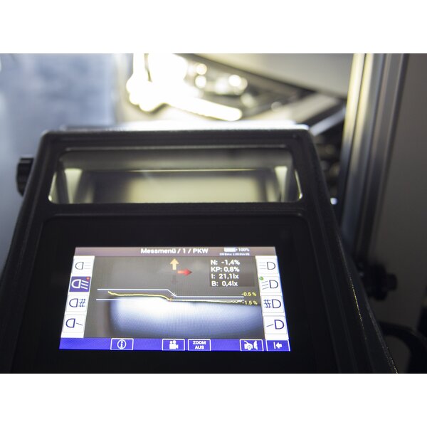 - Equipo digital para una comprobación rápida y objetiva y el ajuste de los faros del vehículo considerando los valores límite legales y las especificaciones del vehículo